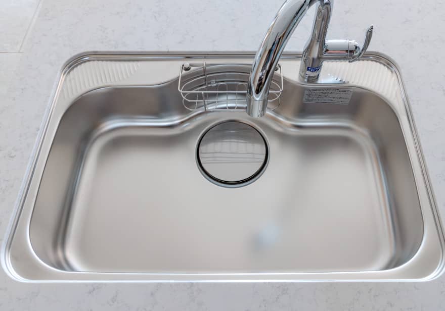 大型ワイド静音シンク - 低騒音仕様なので、水ハネ音や落下音を抑制します。シンク裏面に制振材を貼ることで、スプーンなどをシンクに落としたときの音も低減できるので安心です。