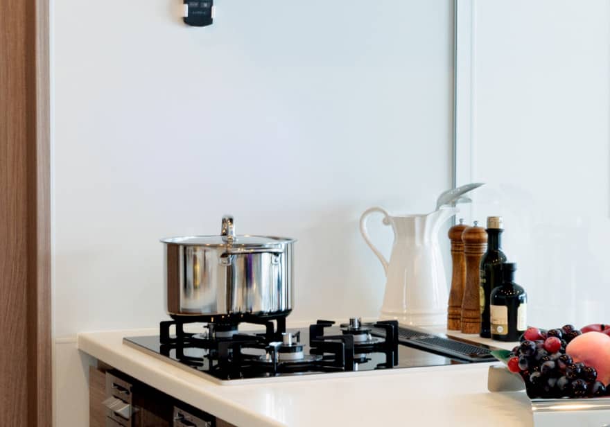 - 吹きこぼれの汚れなど、お手入れが簡単で、熱や衝撃にも強いガラストップを採用。多様な便利機能が充実しています。