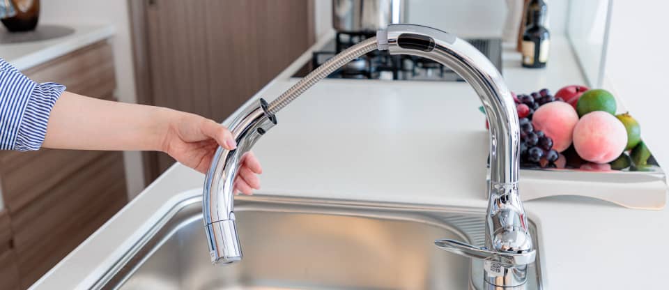 浄水器[LC] - キッチンまわりをすっきり使える「蛇口一体型」の要素をそのままに「タッチレス」機能を搭載した水栓です。