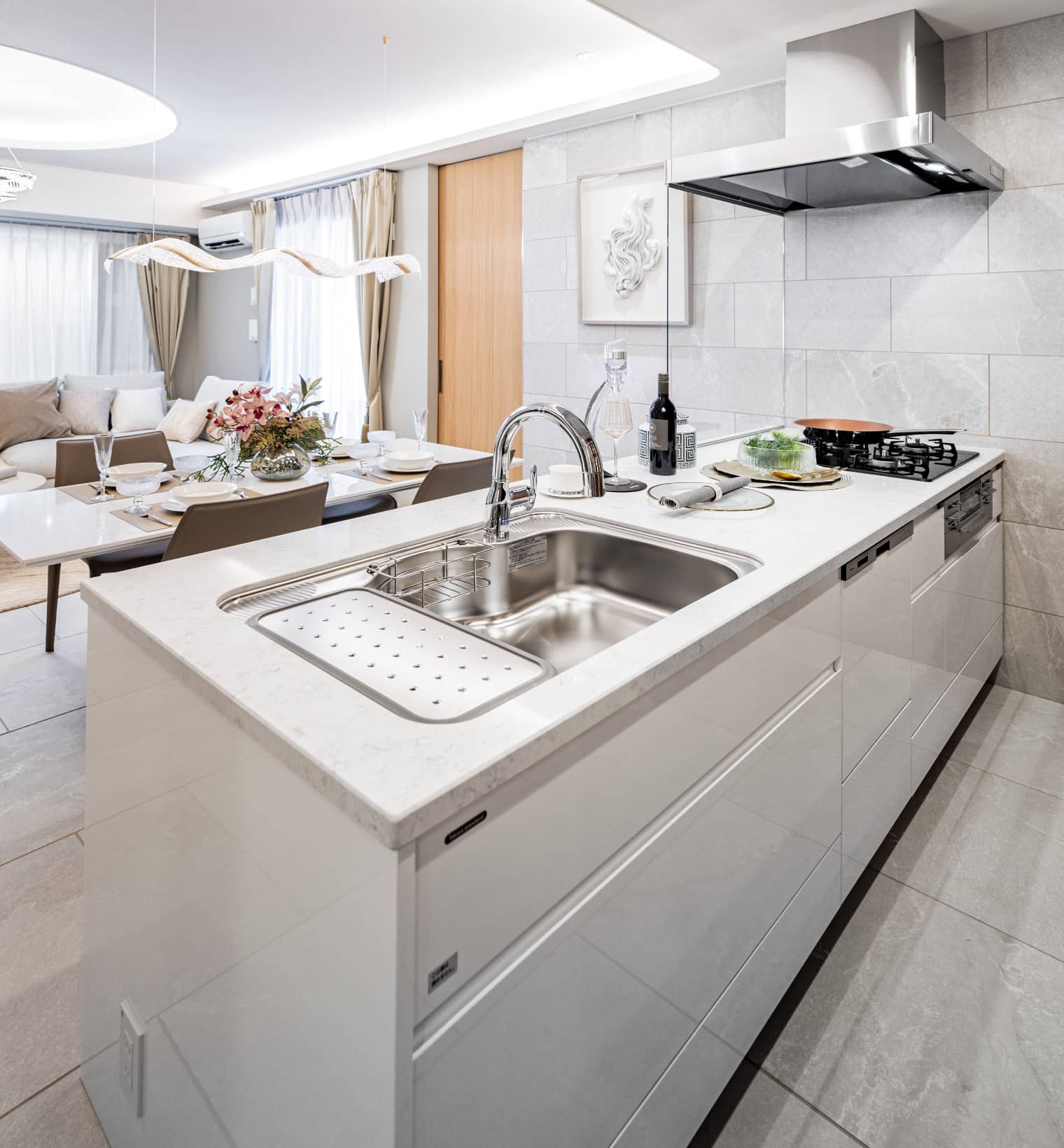 - カウンタートップには、上品な美しさが漂う人造大理石を採用。丈夫でお掃除がしやすく、高級感あふれるキッチンを演出します。