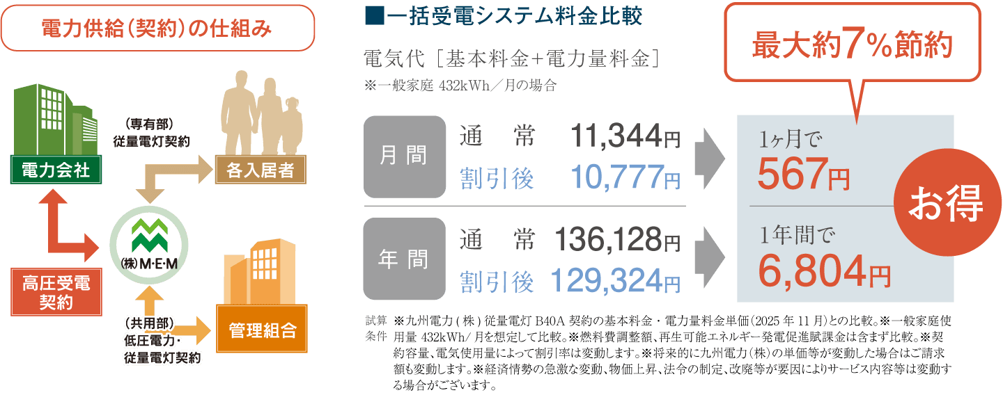マンションだから利用できる一括受電システムで電気料金を節約。