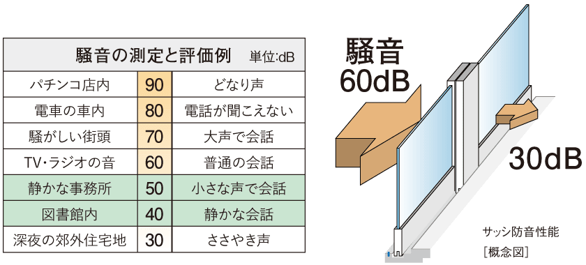 - 防音サッシ採用