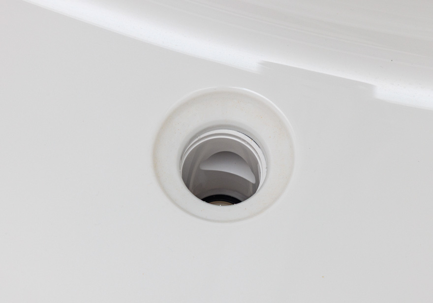 - 排水口の金具をなくし、水はけの良い形状なので、お手入れがしやすく、汚れも簡単に拭き取れます。