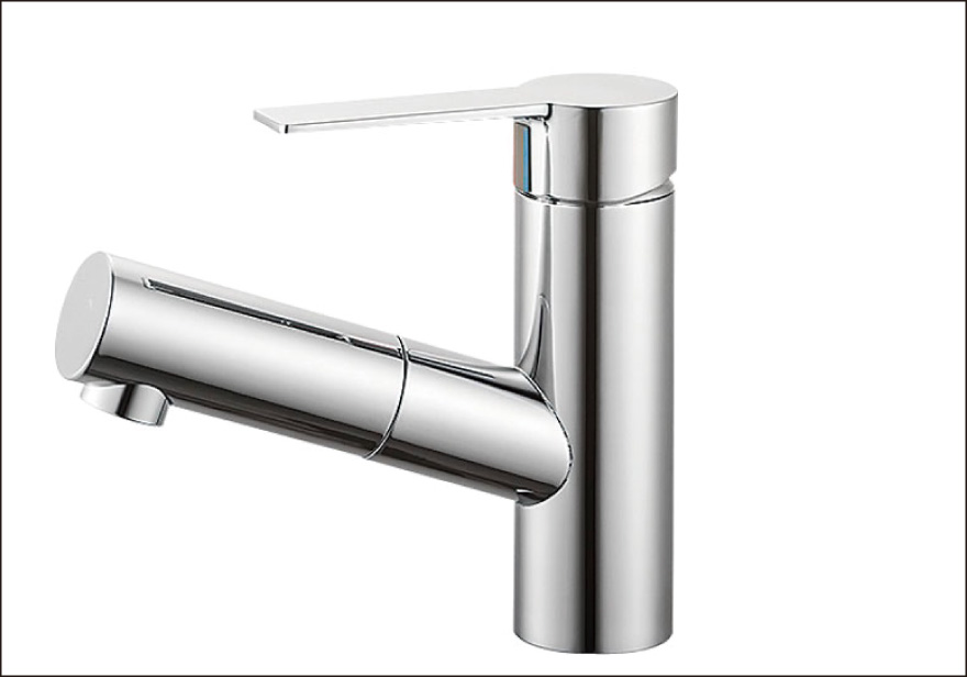 - 水量・湯量の調整が簡単なシングルレバー混合水栓。ヘッドのノズルが伸びるので、洗面ボウルのお掃除等にとても便利です。