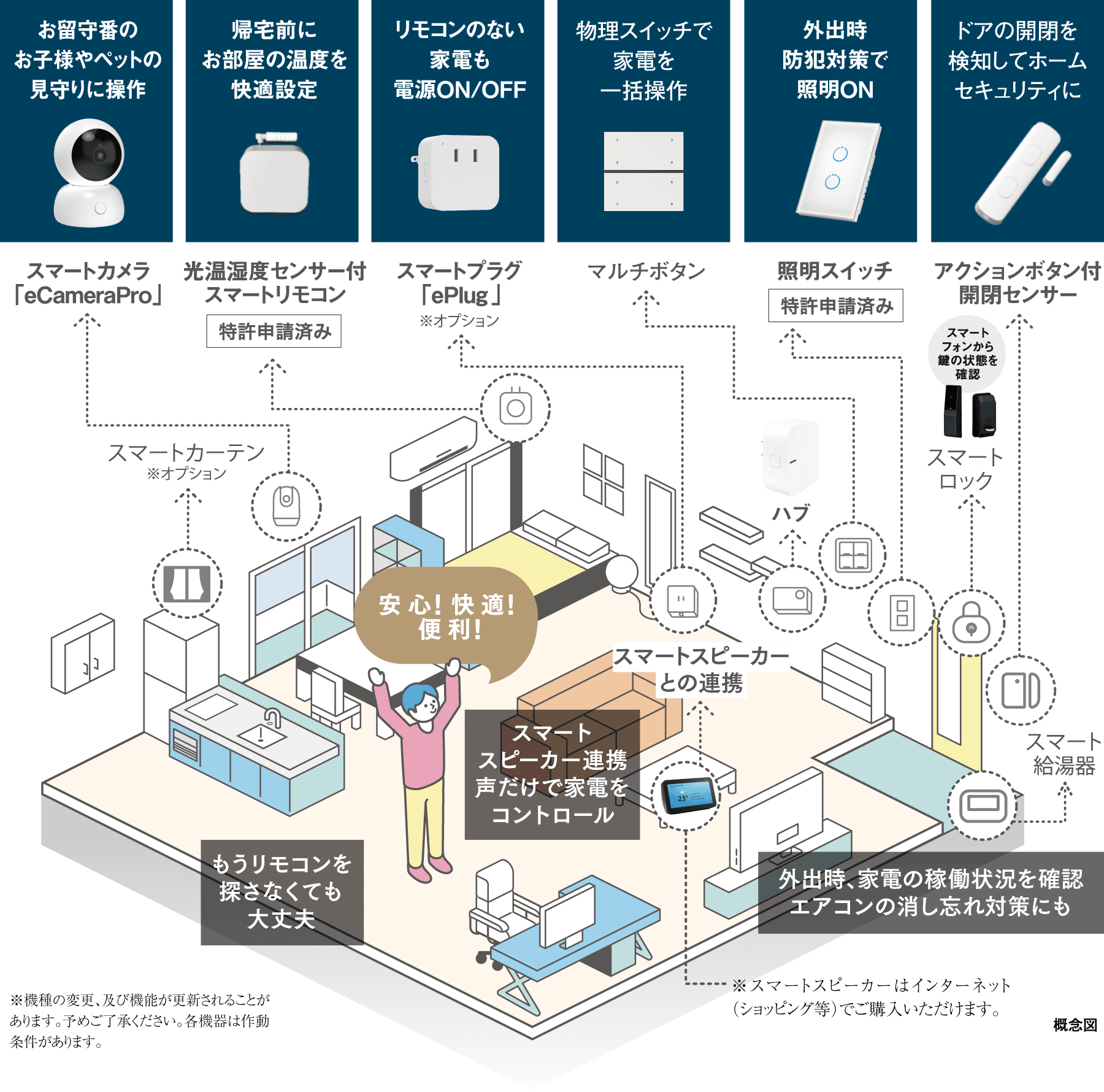 - スマホや音声だけで簡単操作