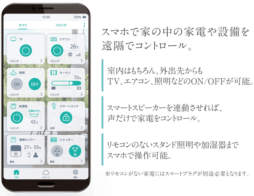 ※リモコンがない家電にはスマートプラグが別途必要となります。