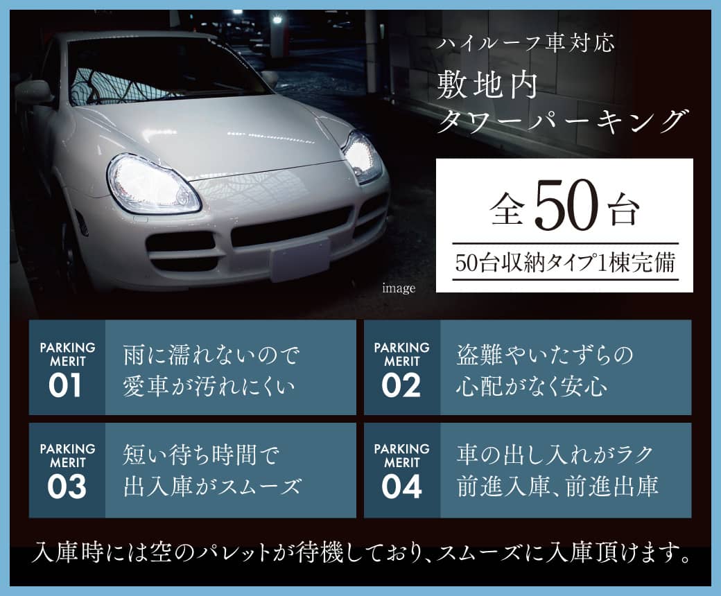 - 駐車場には分譲駐車場を完備。屋根付き平置き駐車場なので、雨の日もぬれずに屋内に入ることができます。