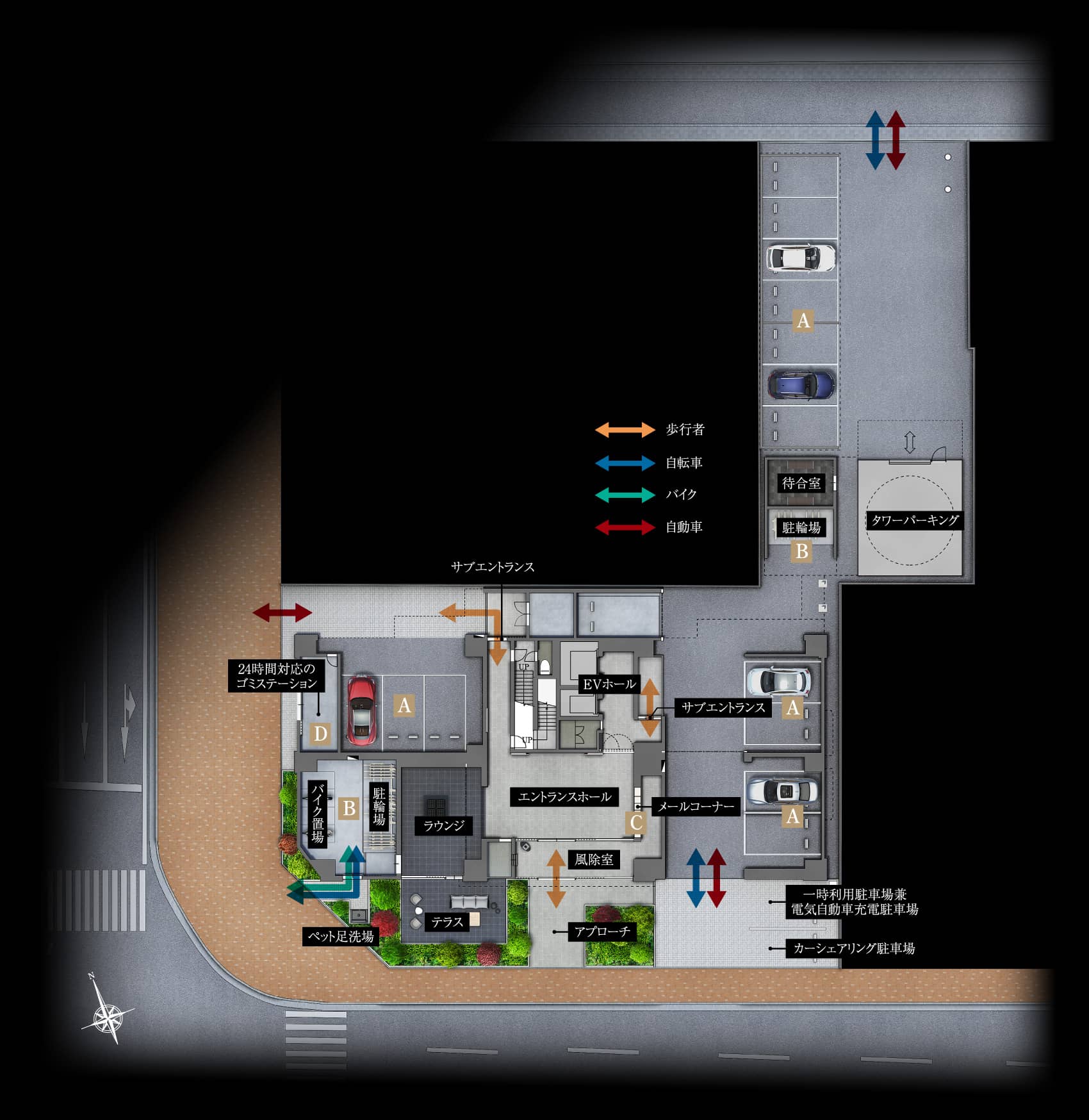 ※掲載の完成予想図は図面を基に描き起こしたもので設計・設備・仕様・色調・植栽等、実際とは多少異なる場合がございます。また、行政官庁の指導または施工上の都合により、形状や仕上等が変更となる場合がございます。予めご了承ください。